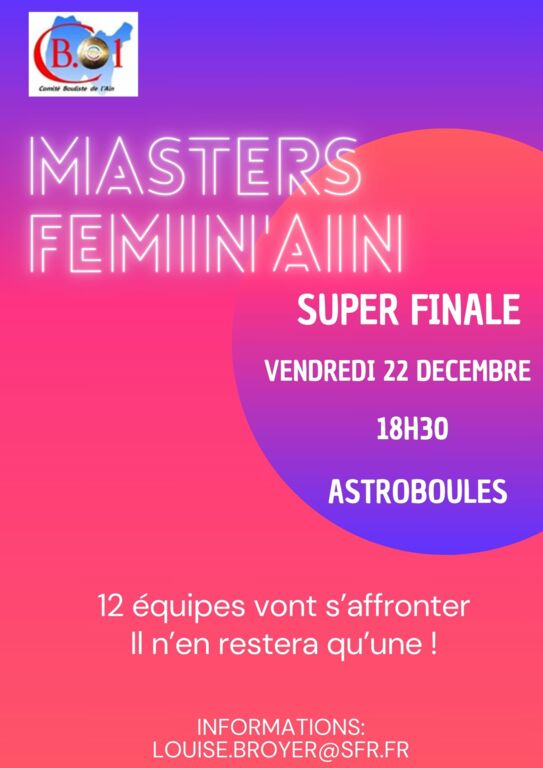 La liste des participantes à la finale des Masters est dispo. Venez les encourager ce vendredi soir.